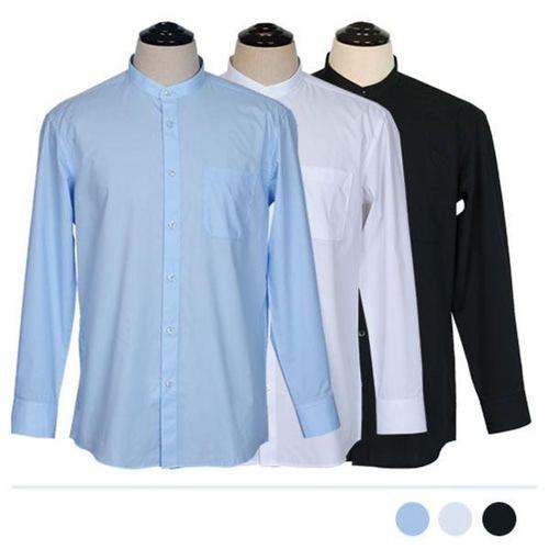 남성 차이나칼라 긴팔 와이셔츠 남자 정장 무지 셔츠 남방 직장인 회사원 여름 선물 사계절 / 1013 블랙