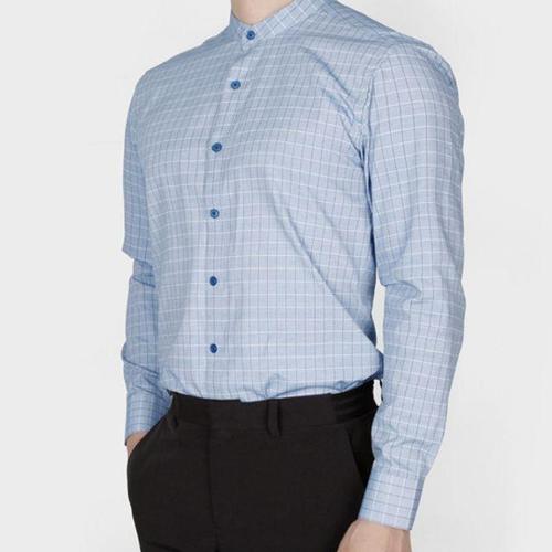 [에이치플러스몰]차이나 카라 셔츠 FS 232 블루 배색 포인트