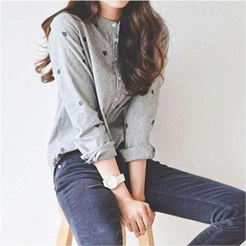 단정한 긴팔셔츠 여성 캐주얼 자수남방 셔츠 차이나넥 WFKBXFR