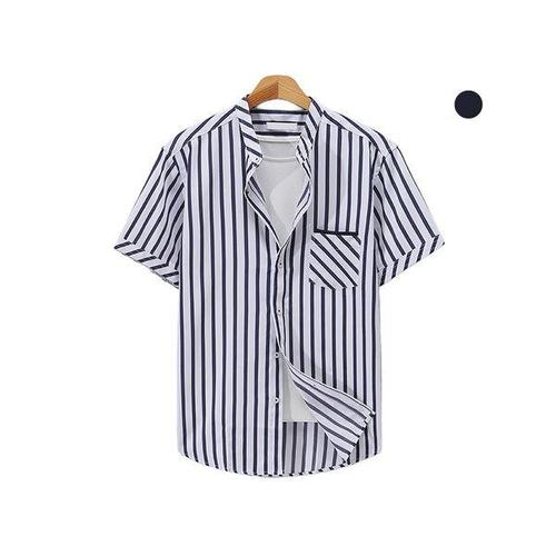 남자셔츠 차이나카라 스트라이프 반팔셔츠
