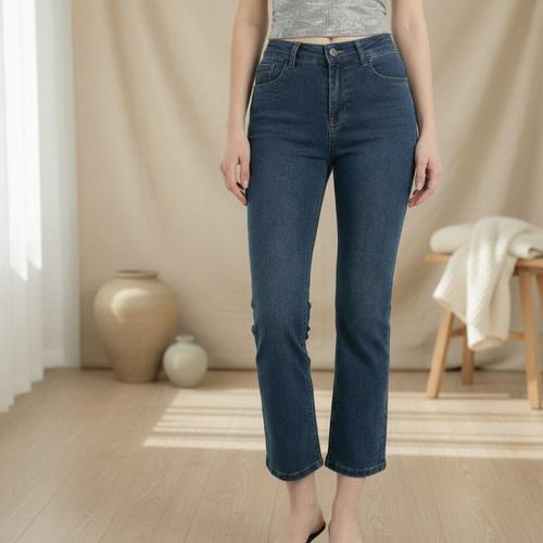 [옷자락]여성 하이웨이스트 스판 슬림 크롭 청바지