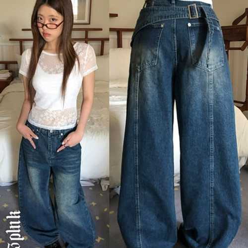 Y2K 루즈 스트레이트 레그 진 여성 바지 배기 와이드 핏 캐주얼 하이웨이스트 레트로 워시드 빈티지 스타일 여성용 청바지