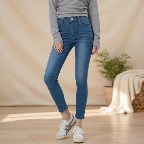 [다잇템]여성 컷오프 하이웨스트 코지 슬림 전체 청바지