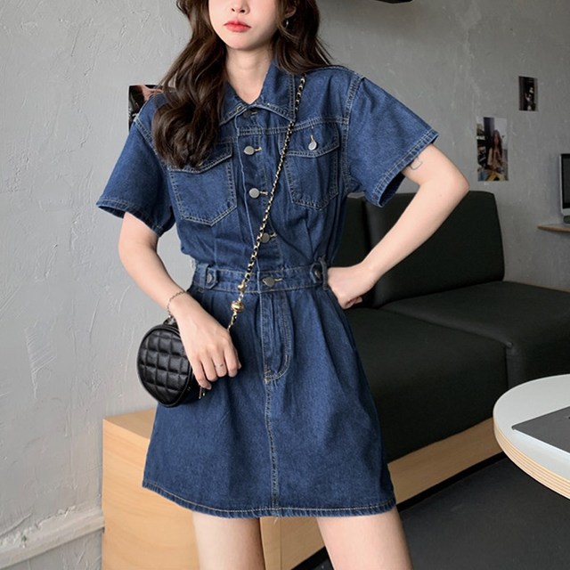 캐주얼 진청 원피스 데님스커트 카라 미니 원피스 (HSJ-WFI0PD5)
