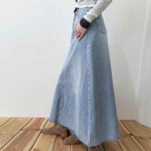 앞트임 스커트 데님롱치마 여자 롱 청치마 (HSJ-WFIGFET)