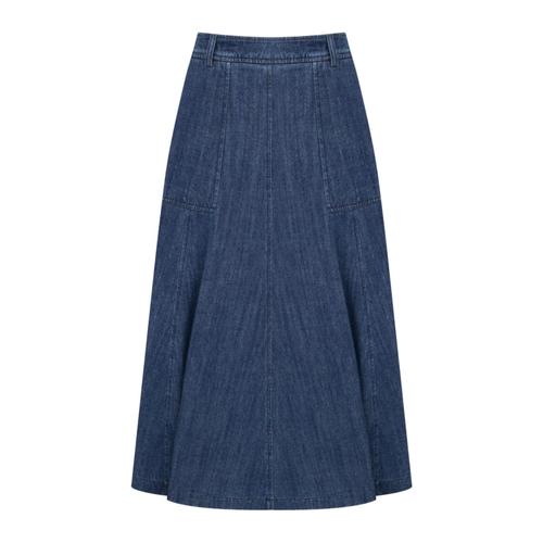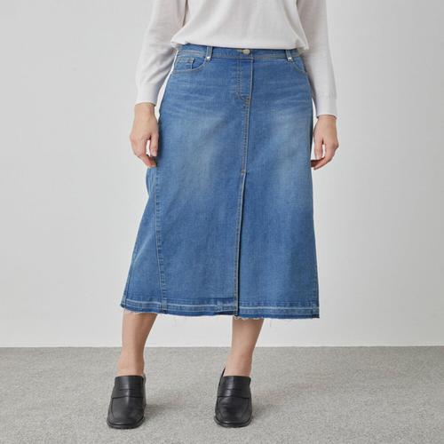 [옷자락]여성 A라인 데님 미디스커트 5부 논스판 청치마