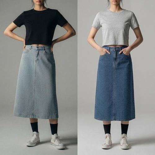 POMTOR 여름 데일리 빈티지 캐주얼 롱 청 치마 데님 스커트