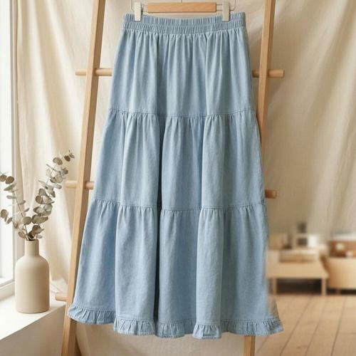 [옷자락]여성용 일상용 롱 데님 스커트