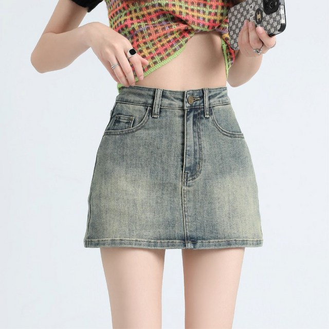 가비진 여성용 데님 워싱 A라인 청치마 미니 스커트 빅사이즈까지