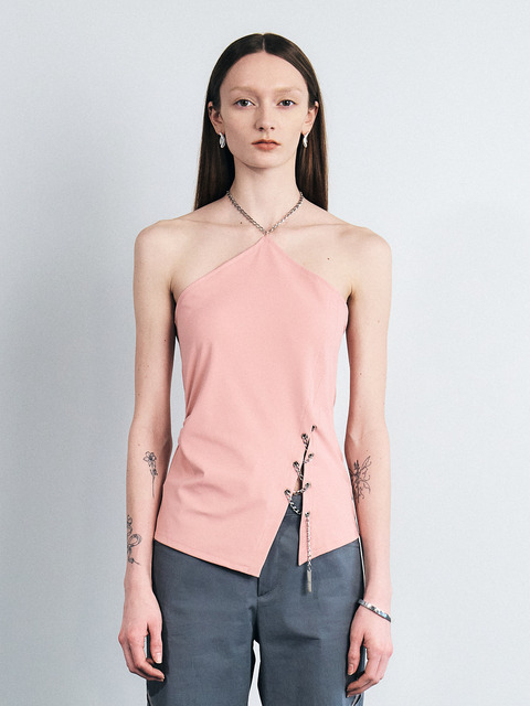 [실롯] 체인 홀터 슬릿 슬리브리스 탑 (핑크)