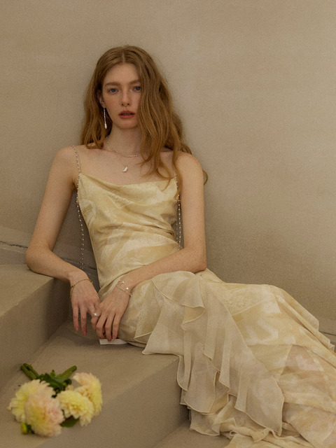 [신스덴] 체인 드롭 슬리브리스 롱원피스