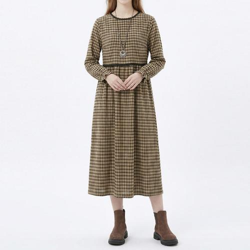 SAHINER 여성 체크 롱원피스 루즈핏 봄가을 데일리룩 AQZ42