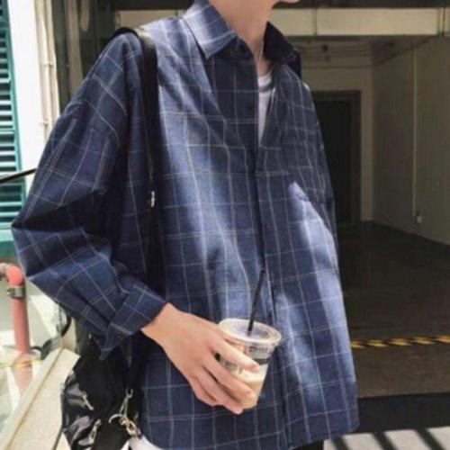 남자체크셔츠 남자빅사이즈셔츠 긴팔 봄 소라색 정장와이셔츠
