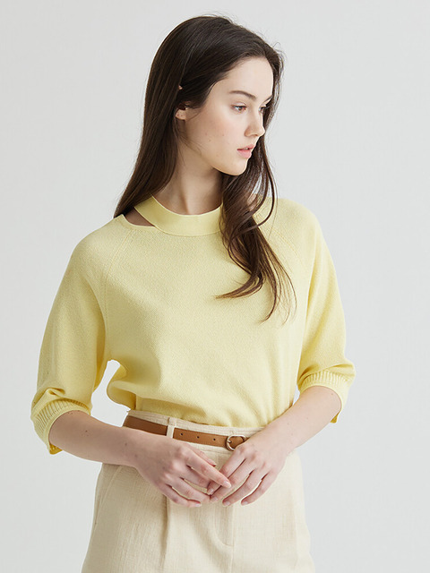 cammello 홀터넥 오프숄더 긴팔 니트 크롭티 어깨트임 단추니트