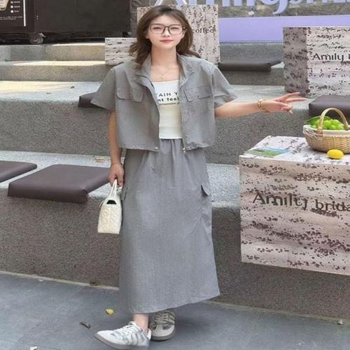 [GGPX]스트링 집업 자켓 카고 롱 스커트 셋업 (GOBOW025D)