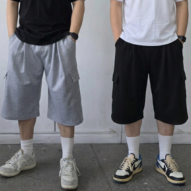 [쿼터]빅 카고 벌룬 와이드 버뮤다 팬츠 아메카지 스트릿 밴딩 7부바지 반바지 5color