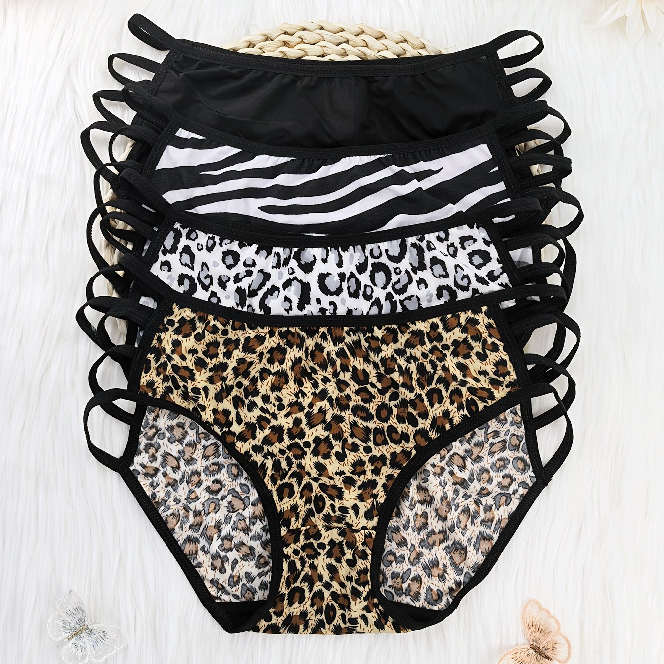 TEMU 7팩 여성용 비키니 팬티 - 얇은 벨트와 로우웨이스트, 나비와 사랑, 동물 패턴, 패턴 프린트, 섹시한 여성용 팬티, 심리스, 부드럽고 편안하며 통기성 좋은 팬티