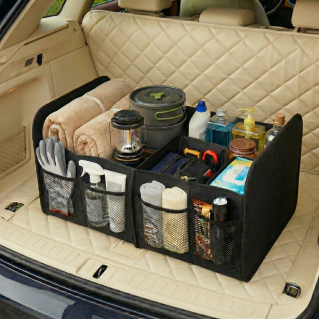 TEMU 다용도 SUV 수납 가방, 차량 트렁크용 디자인, 인조 가죽 소재, 메시 포켓 포함; 매우 넉넉하고 세척 용이