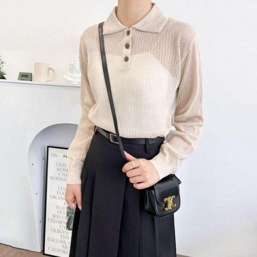 니트티 카라 뽀얌 여자긴팔니트 펀칭 심플 시스루 긴 WD7DD9D