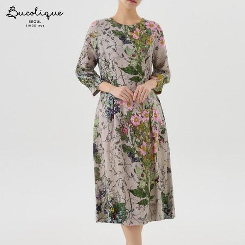 [비꼴리끄(여성)]린넨 프린트 라운드 카라 칠부 원피스 B252WO3110