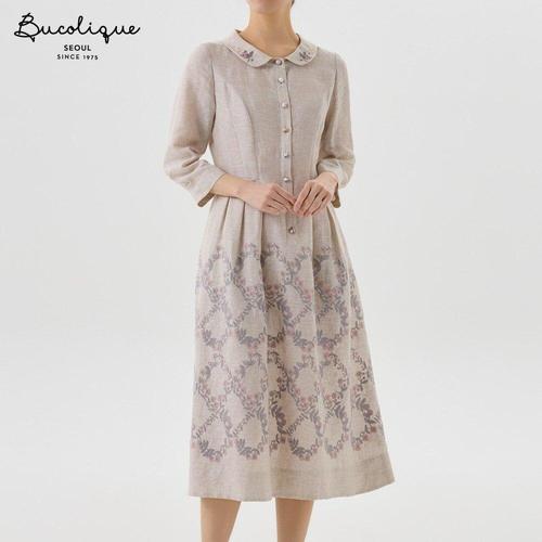 [비꼴리끄]린넨 자수 라운드 카라 칠부 원피스 B252WO3120