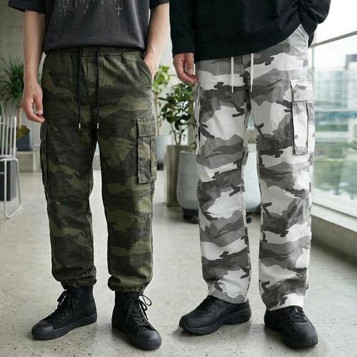 S~4XL 남자 카고 조거팬츠 남성 카고바지 밴딩 스판 카모 밀리터리 택티컬 전술 면바지 캠핑룩 빅사이즈