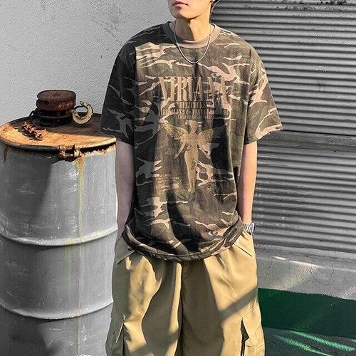 [피클]오버핏 카모 아트워크 캐릭터 백프린링 반팔 티셔츠