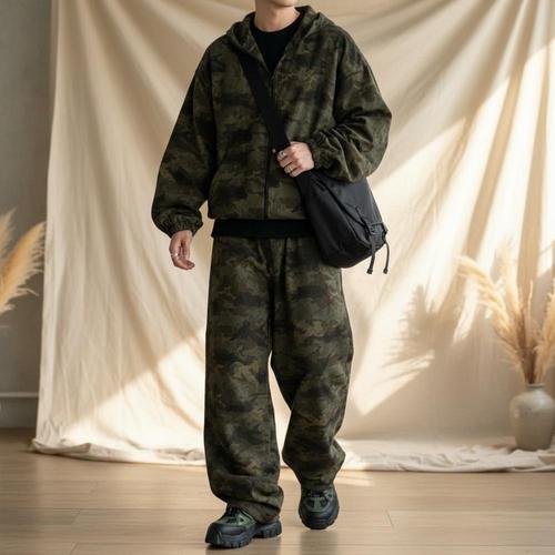 [옷자락]남성 오버사이즈 카모 전술 후드티