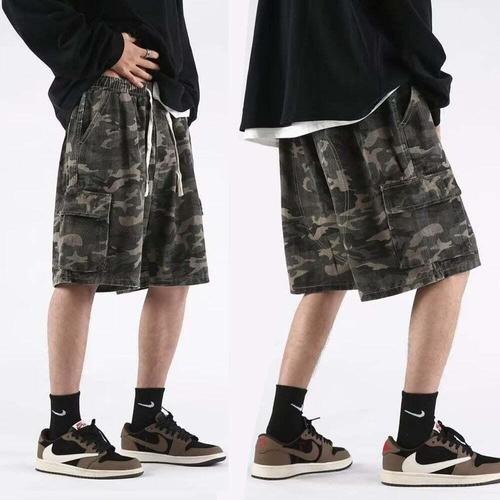 [셀럽하우스]립스탑 QNSS5309 카모 캐주얼 남성 카고 5부 반바지