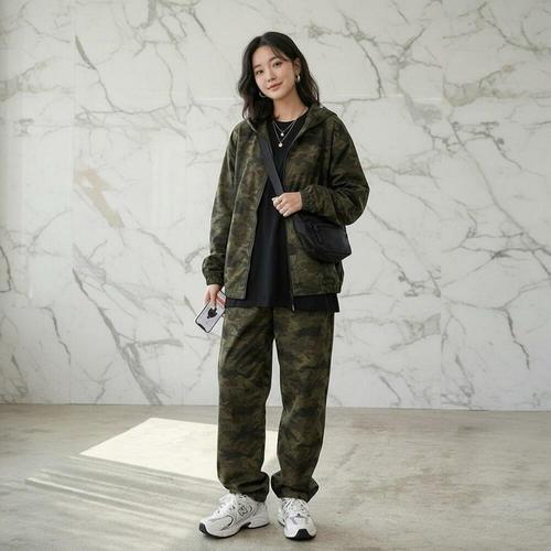 체형 걱정 없는 카모후드집업! 여유로운 핏으로 편안함을 즐기세요.