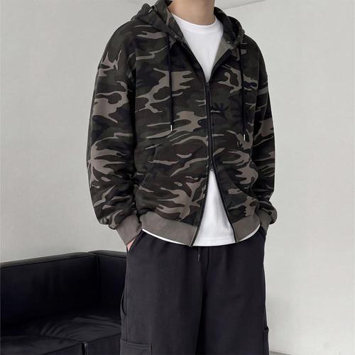 [옷자락] 남자 오버핏 카모 전술 아웃도어 후드집업
