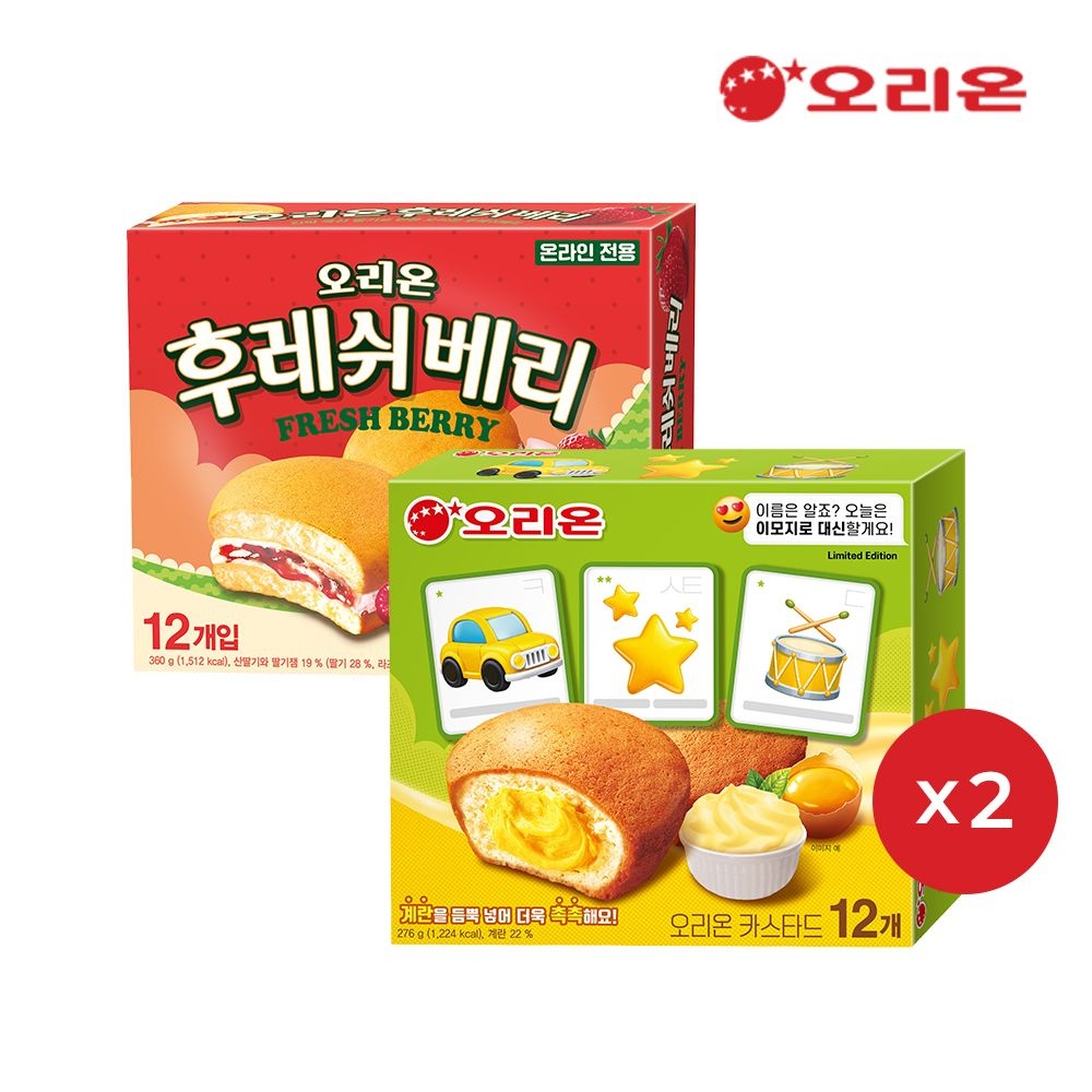 오리온 카스타드 딸기생크림276g + 후레쉬베리 12입 각2개 (총4개)