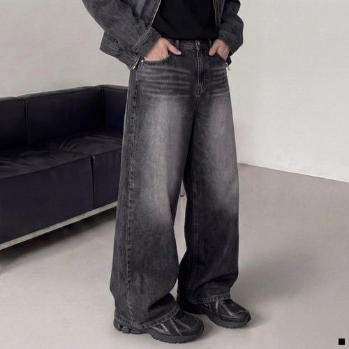 [노멀쉐이크]샌드워싱 사이드턱 벌룬 와이드 청바지 2color