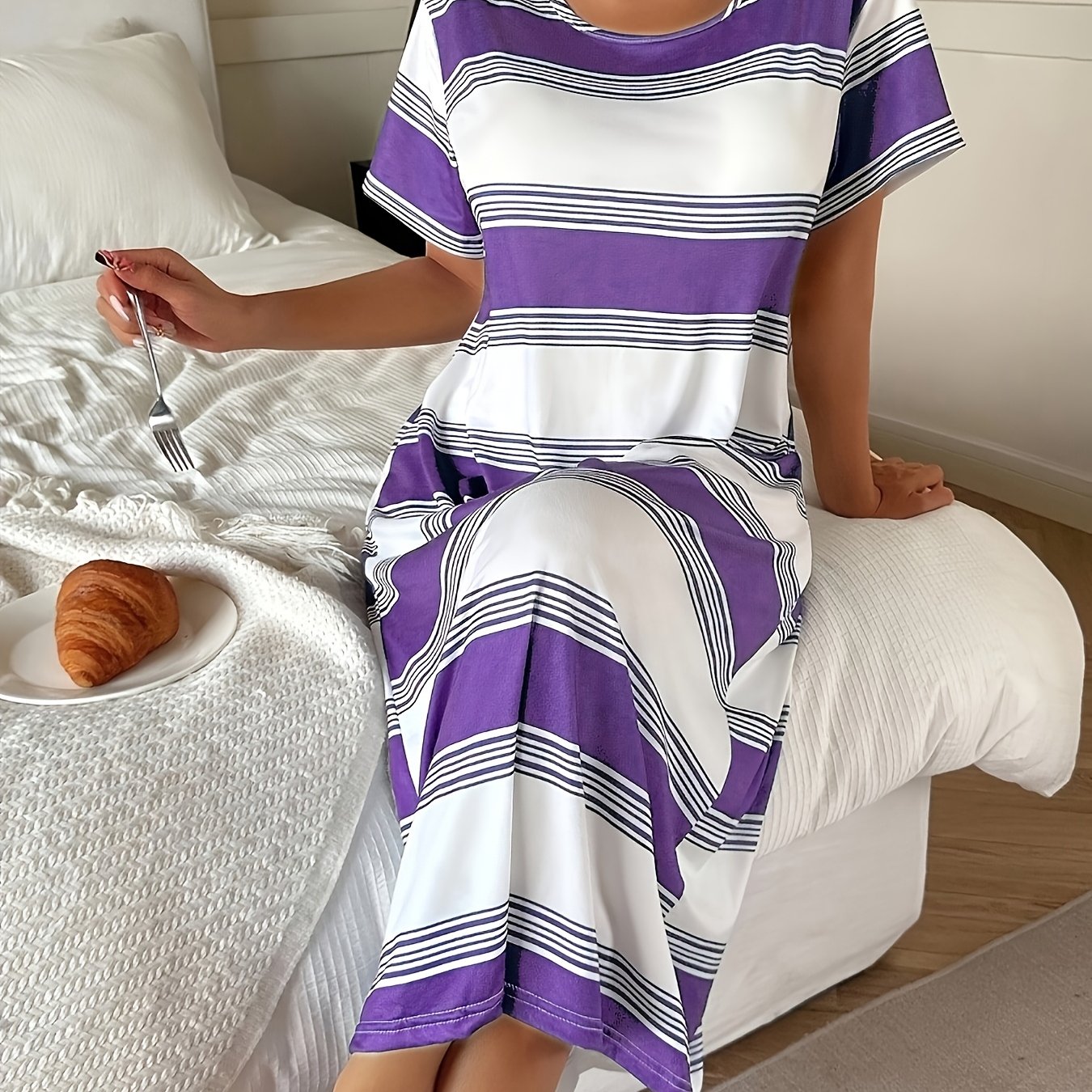 TEMU 여성용 캐주얼 기하학 프린트 루즈핏 롱 티셔츠 스타일 파자마, 미드 길이 드레스, 캐주얼 숏 슬리브 티셔츠 스타일 드레스
