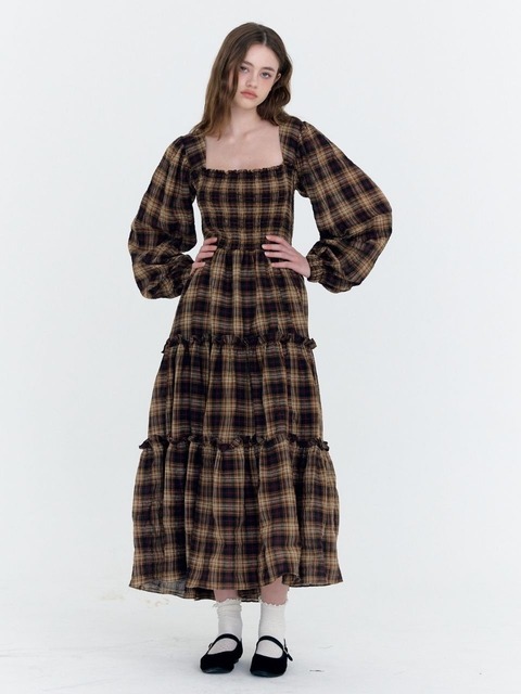 [패브릭 서울] 체크 스모크 프릴 캉캉 드레스