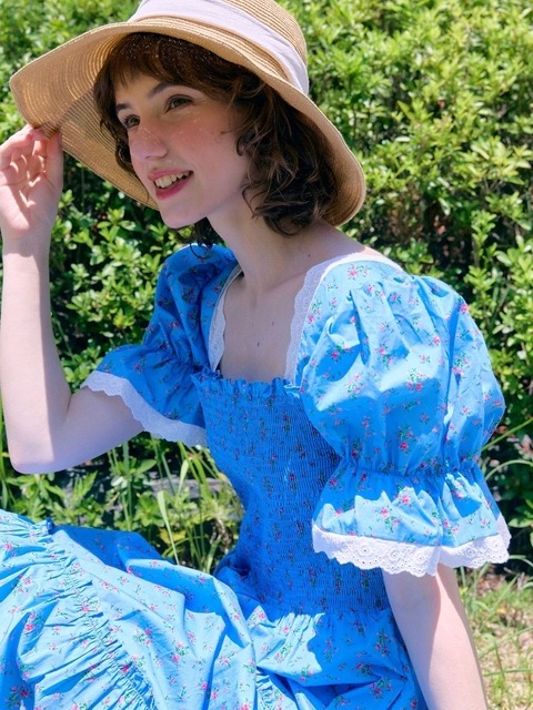 플라워 원피스 쉬폰 퍼프소매 A라인 캉캉 스모크밴딩 WEC46D7