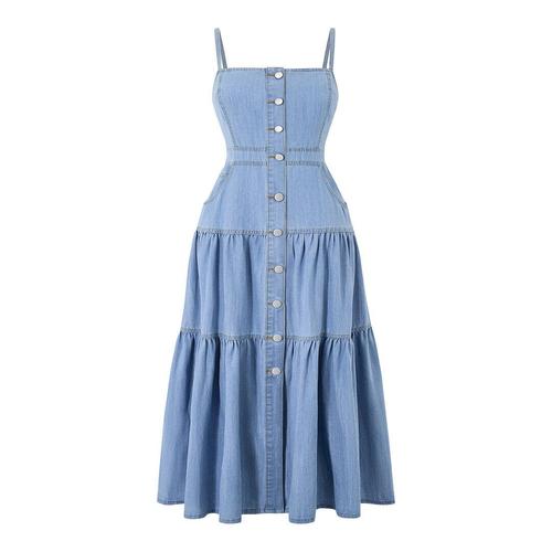 [GGPX]빈티지 데님 버튼업 캉캉 롱 원피스 (GQBOW018D)