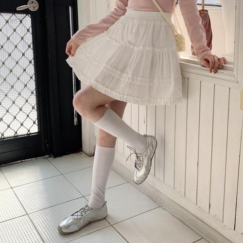 [옷자락]여성 데이트룩 경쾌 사랑스러운 프릴 캉캉 치마