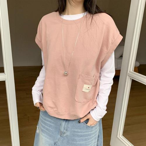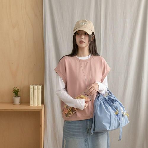 [옷자락]여성 순면 워싱 루즈핏 민소매 캡티셔츠
