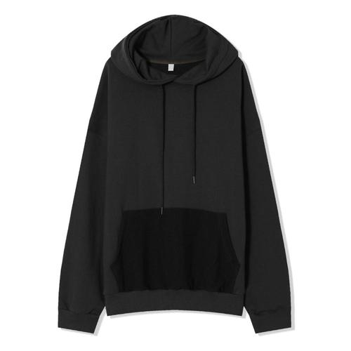 남자 턴오버 배색 캥거루 스? 후드 티셔츠 AC-TSA-Q055-블랙