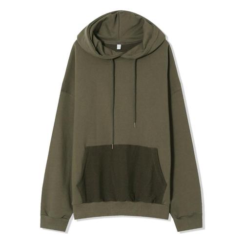 남자 턴오버 배색 캥거루 스웻 후드 티셔츠 AC-TSA-Q055-카키
