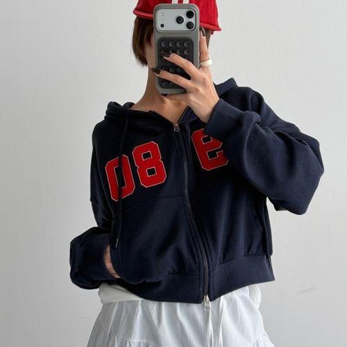[신상오픈런]여성 프린트 세미크롭 후드 집업 캥거루 주머니 츄리닝