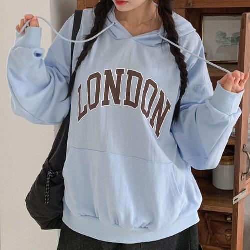 [미라클세븐]여성용 봄철 캠퍼스 스타일 캥거루 포켓 레터링 박시 후드 티셔츠