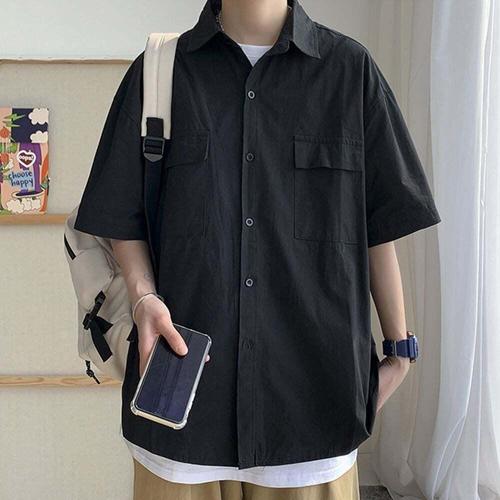 TEMU 여름 남성 라펠 반팔 셔츠, 캐주얼 스포츠웨어 남성 상의. 비즈니스, 업무, 데이트, 홈웨어에 완벽한 여행 필수 캐주얼 스타일