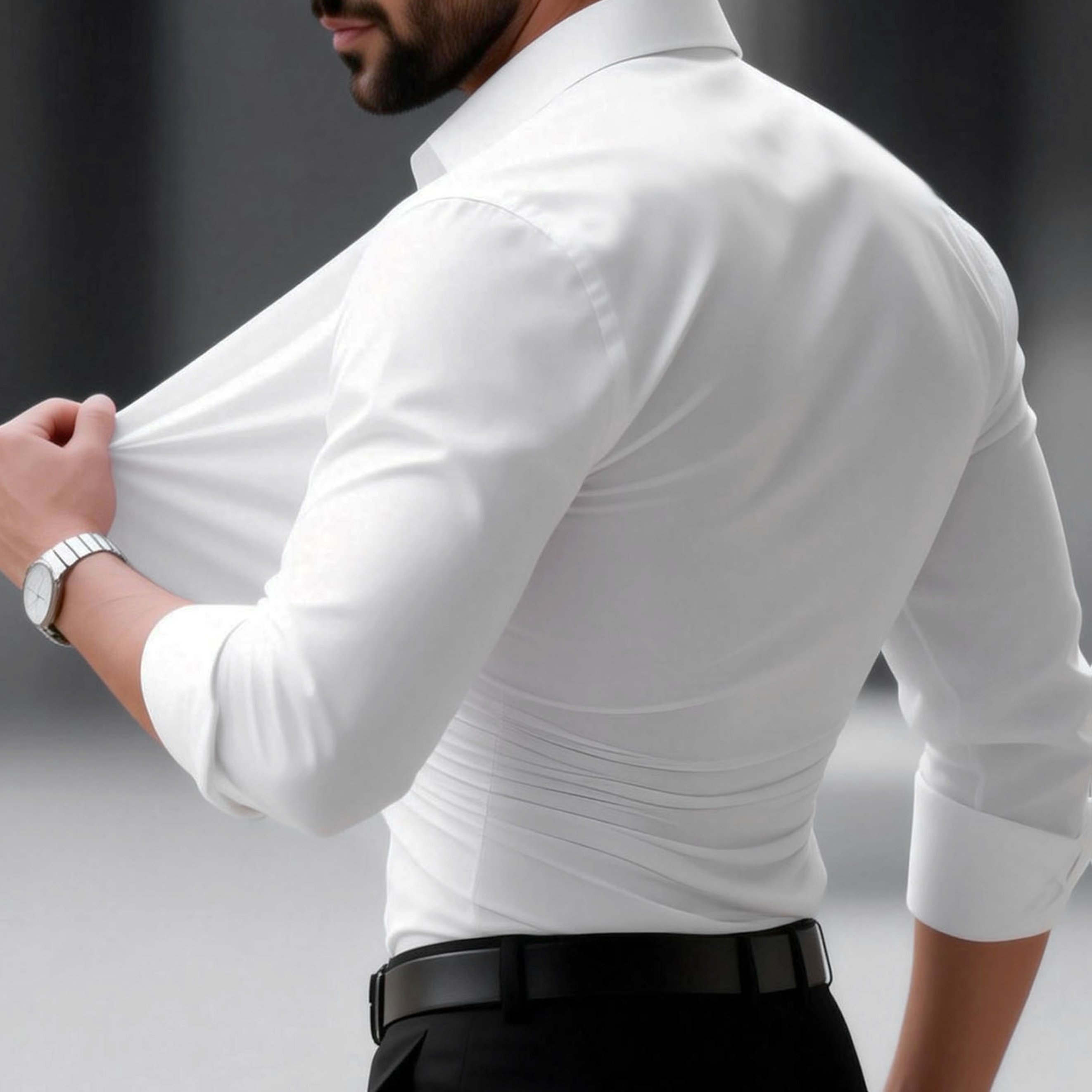 TEMU 남성용 주름 방지 스트레치 드레스 셔츠 - 높은 신축성의 버튼업 칼라 셔츠, 비즈니스 및 캐주얼웨어용, 단색 테일러드핏 긴소매 버튼 칼라 상의, 기계 세탁 가능, 사계절 사무실 및 정장용