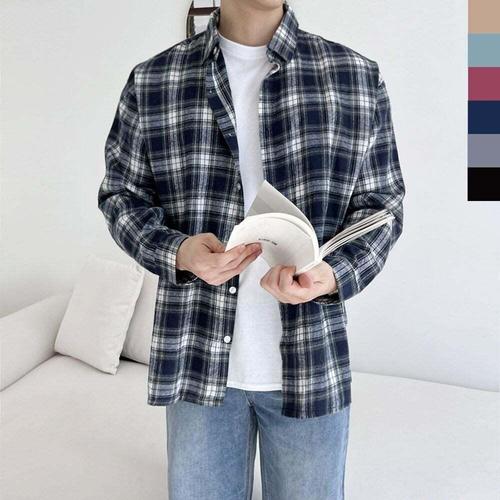 [셀럽하우스]남성 JYOS6008 가을남방 커플 모노 오버핏 체크남방 티셔츠