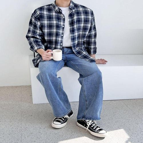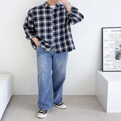 [셀럽하우스]남성 ANRL0261 커플 모노 오버핏체크남방