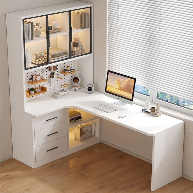 학생 공부 책장결합수납 일체형 책상 게이밍 컴퓨터 ㄱ자 코너 파티션 탁자, 화이트(A)