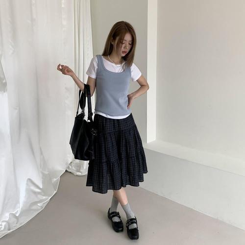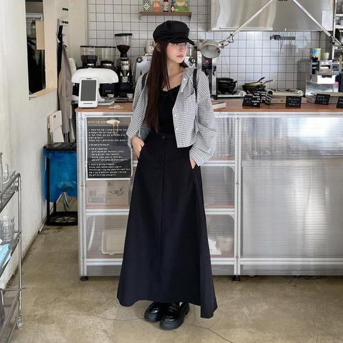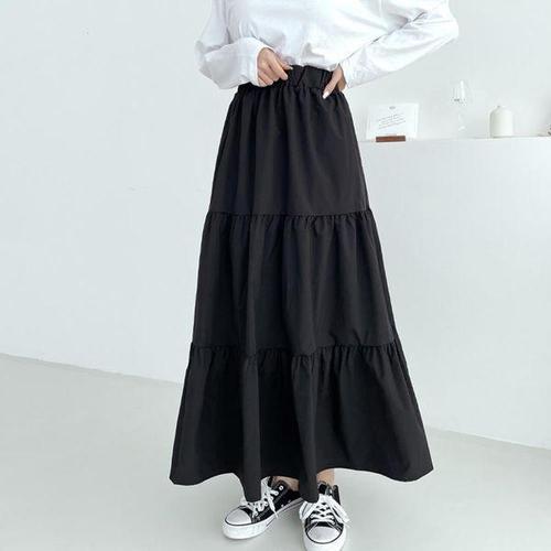 [다잇템]여자 코지 일상룩 티어드 고무줄 롱스커트