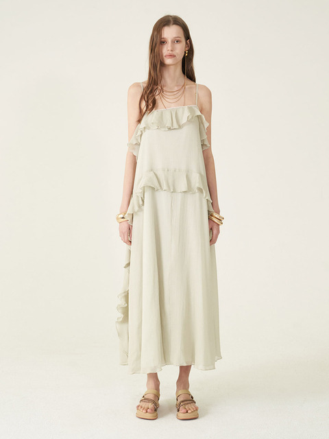 [까이에] 은사 스트라이프 면실크 티어드 프릴 슬립 원피스